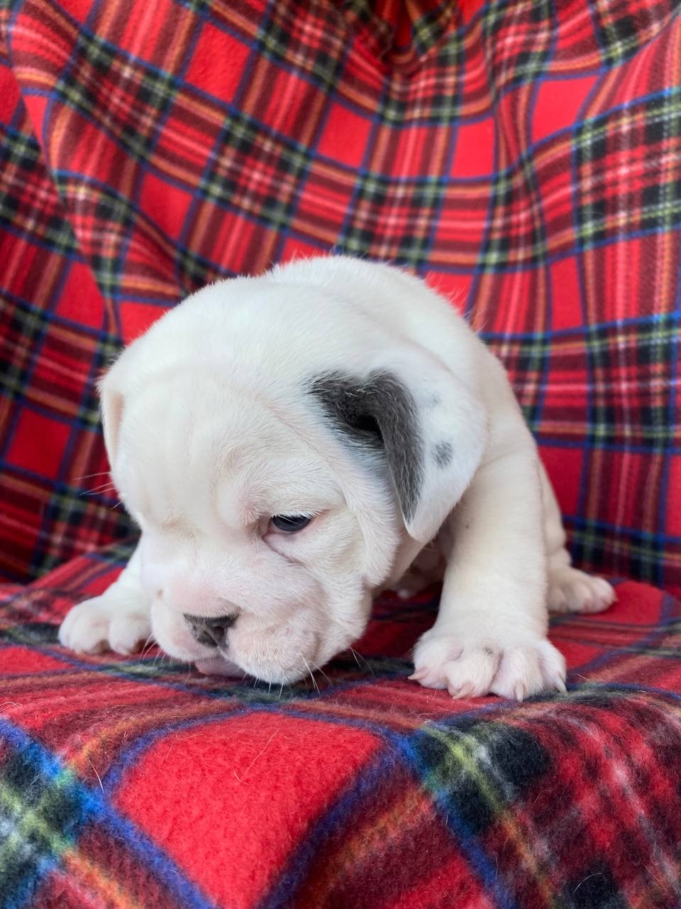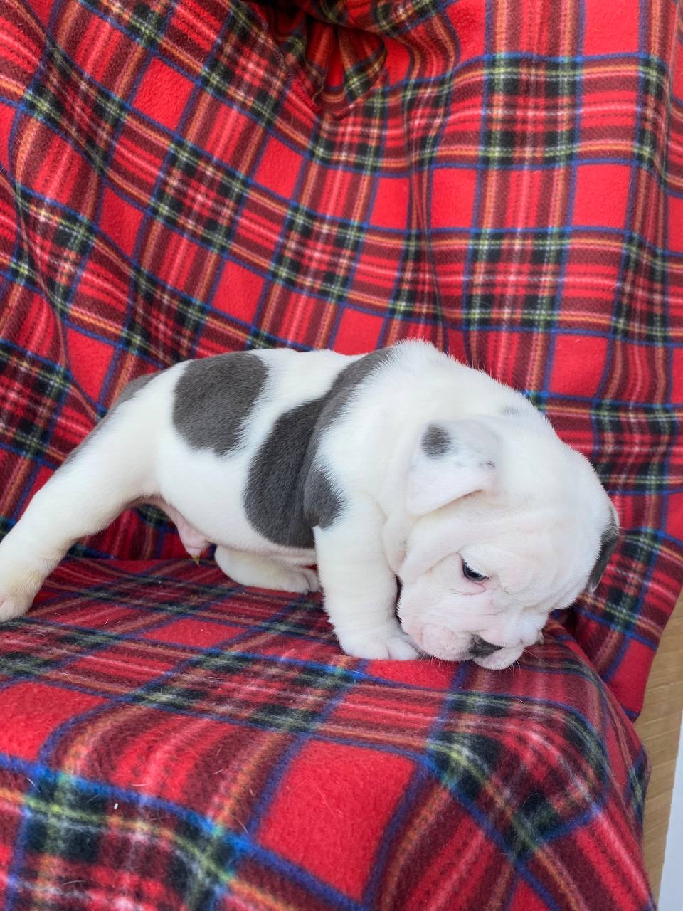 Щенок цветного английского бульдога, мальчик. Окрас бело-голубой. Документы АВKC. Привит по возрасту. Озорной, чудесный мальчик ищет своих маму и папу.